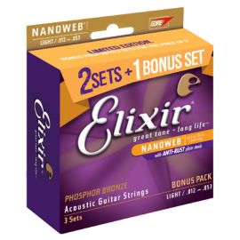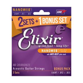 16539 NANOWEB Струны для акустической гитары, 3 комплекта, Light, бронза 80/20, 12-53...