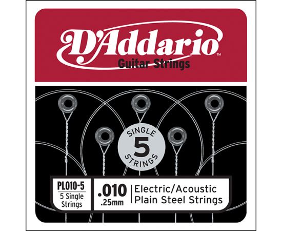 PL010-5 Plain Steel Отдельная стальная струна без обмотки 010, 5шт, D`Addario