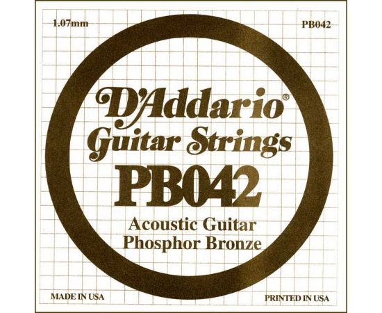 PB042 Phosphor Bronze Отдельная струна для акустической гитары, фосфорная бронза, .042, D'Addario