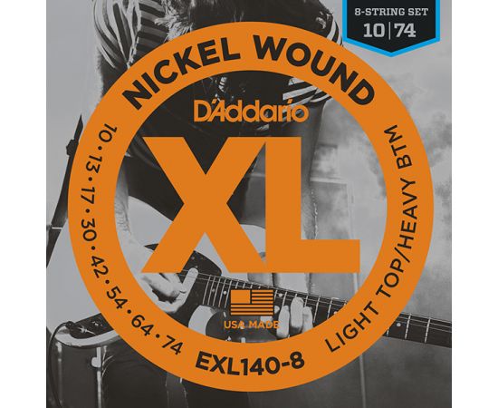 EXL140-8 Nickel Wound Комплект струн для 8-струнной электрогитары, Light Top/Heavy Bottom, 10-74, D'Addario