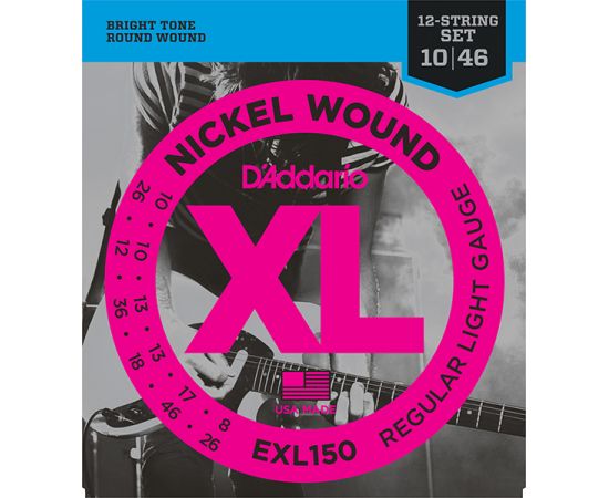 EXL150 Nickel Wound Комплект струн для 12-струнной электрогитары, Regular Light, 10-46, D'Addario