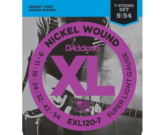 EXL120-7 XL NICKEL WOUND Струны для 7-струнной электрогитары Super Light 7-String 9-52 D`Addario