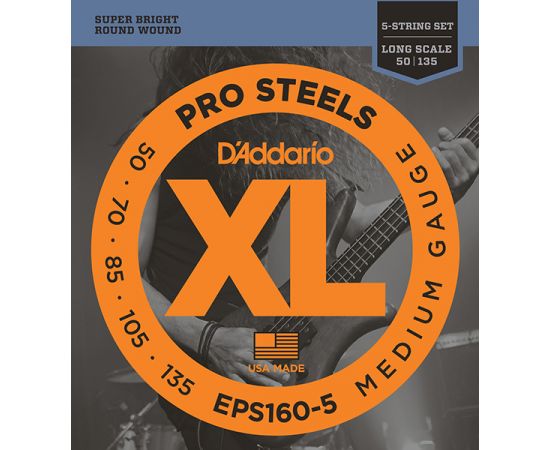EPS160-5 ProSteels Комплект струн для 5-струнной бас-гитары, Medium, 50-135, Long Scale, D'Addario