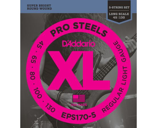 EPS170-5 ProSteels Комплект струн для 5-струнной бас-гитары, Light, 45-130, Long Scale, D'Addario