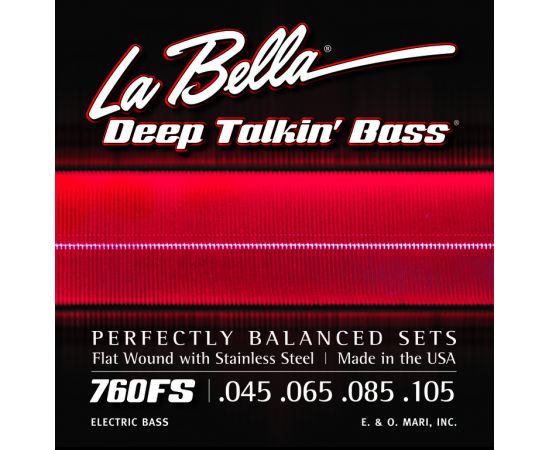760FS Deep Talkin Bass Standart Комплект струн для 4-струнной бас-гитары. Тонкий керн и многослойная плоская оплетка из нержавеющей стали. Рекомендована для безладовых гитар! 045 065 085 105 La Bella США