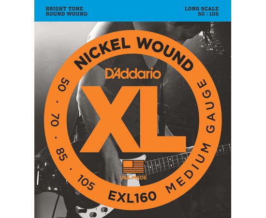 EXL160 XL NICKEL WOUND Струны для бас-гитары Long Medium 50-105 D`Addario