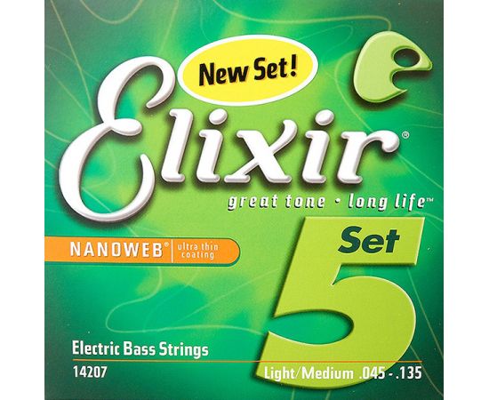 14207 NANOWEB Комплект струн для 5-струнной бас-гитары, никелированные, Light/Medium, 45-135, Elixir