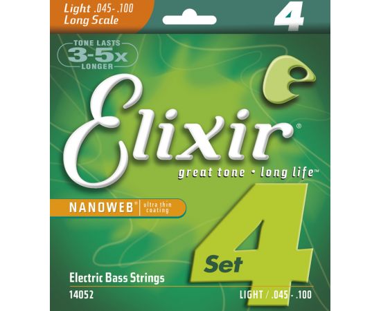 14052 NANOWEB Комплект струн для бас-гитары, никелированные, Light, 45-100, Elixir