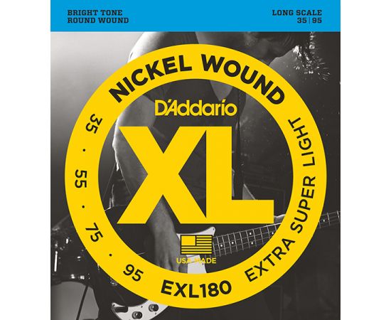 EXL180 Nickel Wound Комплект струн для бас-гитары, Extra Super Light, 35-95, D'Addario