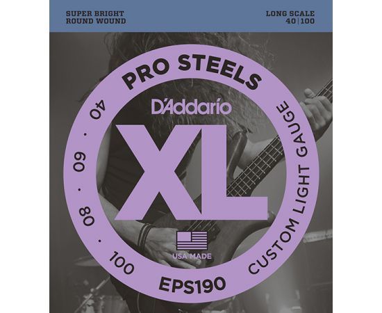 EPS190 ProSteels Комплект струн для бас-гитары, Custom Light, 40-100, D'Addario