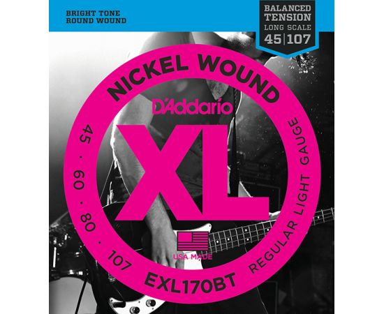 EXL170BT Nickel Wound Комплект струн для бас-гитары, сбалансированное натяжение, Regular Light, .45-107, D'Addario