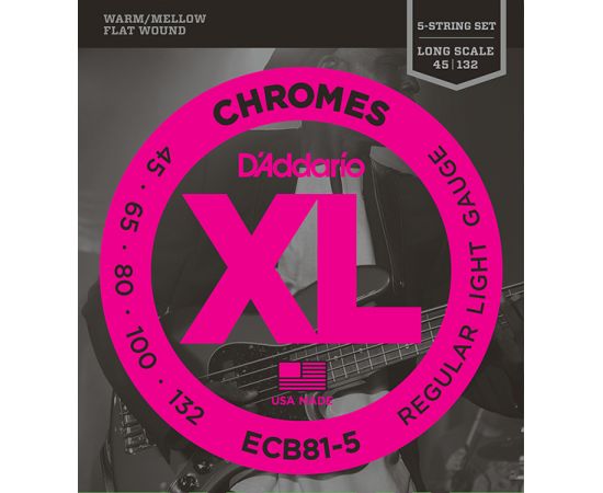 ECB81-5 Chromes Комплект струн для 5-струнной бас-гитары, Light, 45-132, Long Scale, D'Addario