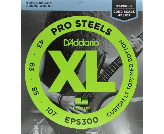 EPS300 ProSteels Комплект струн для бас-гитары, Lt top/Med bottom, 43-107, D'Addario
