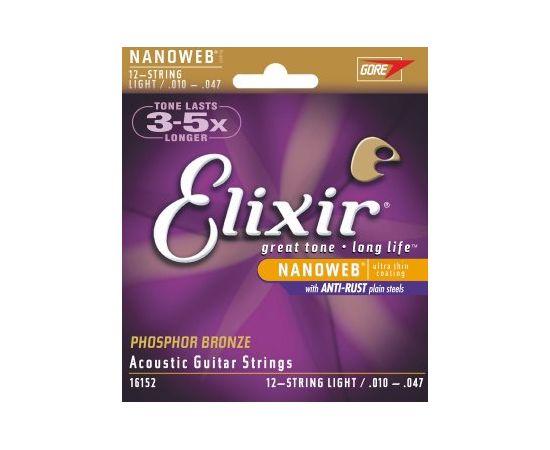 16152 NANOWEB Комплект струн для 12-струнной акустической гитары, Light, фосф.бронза, 10-47, Elixir