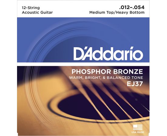 EJ37 Phosphor Bronze Комплект струн для 12-струнной гитары, ф/бр, M.Top/H.Bottom, 12-54, D'Addario