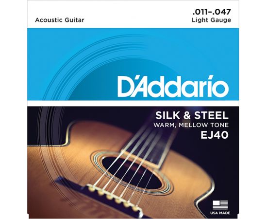 EJ40 SILK&STEEL Струны для акустической гитары посеребренные сталь и шелк 11-47 D`Addario
